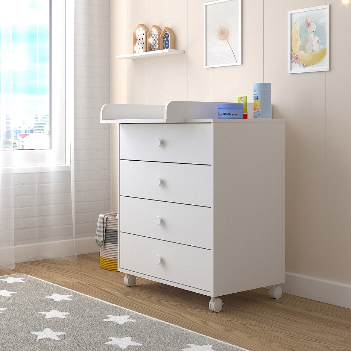 Комод пеленальный детский 4 ящика Pituso Kids Rolf на колесах цвет: белый БП-00004032