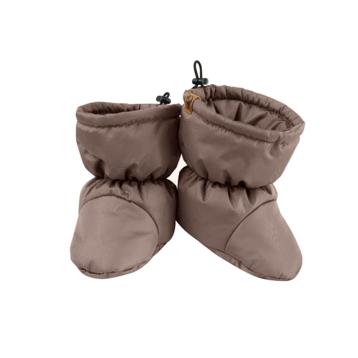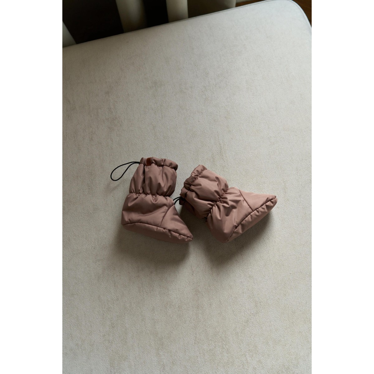 Модные, однотонные дутики. Материал холлофайбер согревает ножки, не спадают. Вверх пинеток сзади на резиночке, регулируется по ширине Удобные для прогулок в коляске. Можно сочетать с комбинезоном из колекции Dew.