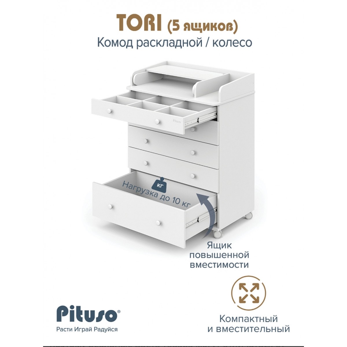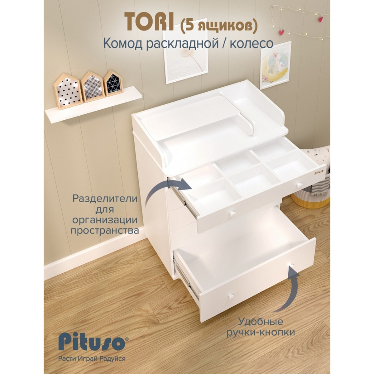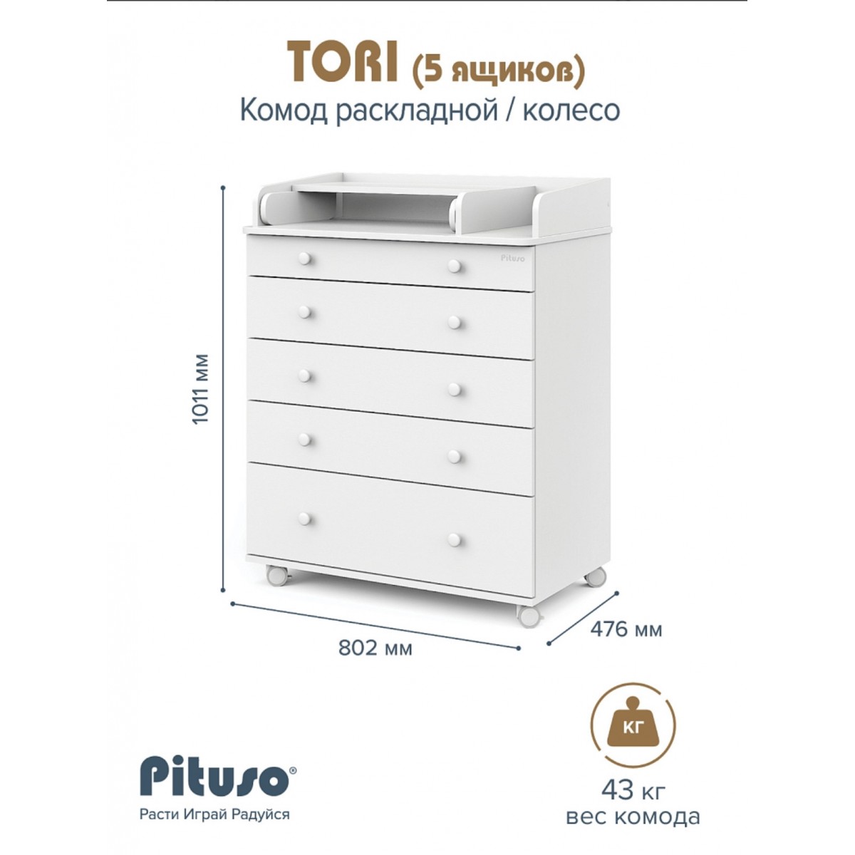 Комод пеленальный раскладной 5 ящиков Pituso Tori цвет: Белый-белый БП-00004219