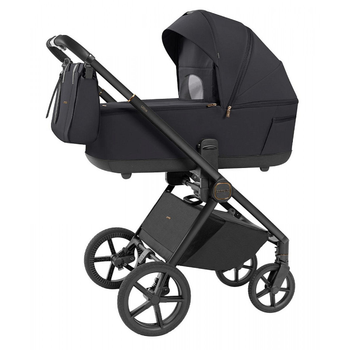 Большой капор с солнцезащитным козырьком и система вентиляции. В капоре встроена большая сетчатая секция под плотным тканевым клапаном, дополнительная сетчатая вставка в задней части люльки.