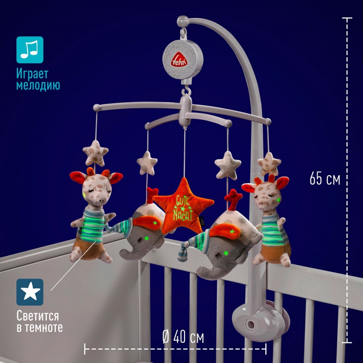Музыкальный мобиль-каруселька с игрушками Спокойной ночи светится в темноте FEHN 053180