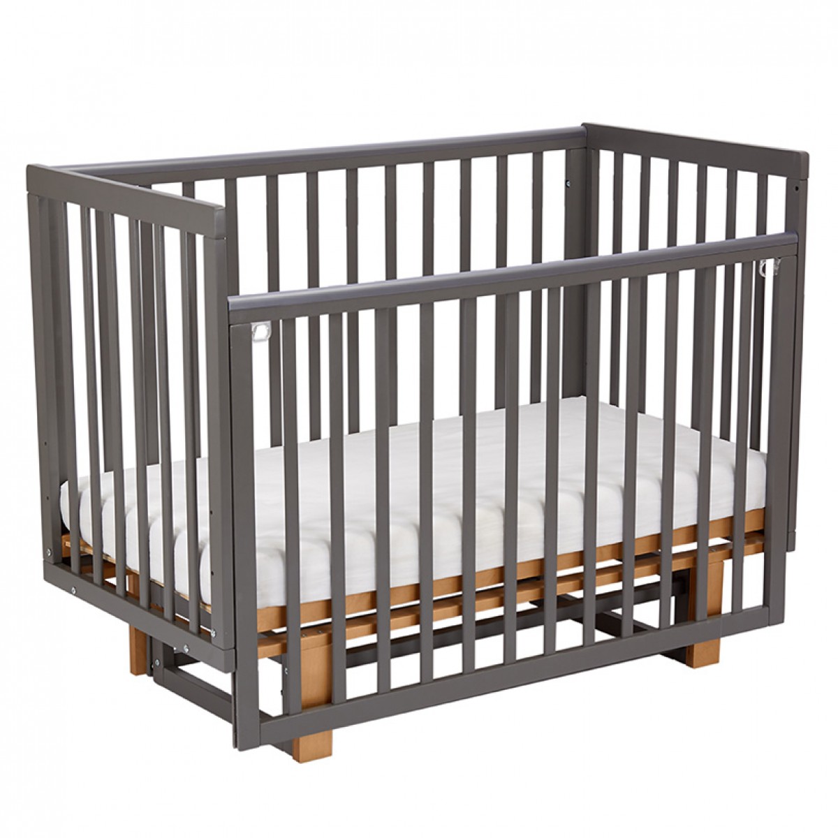 Детская деревянная кроватка Lea 2 с быстросъемной стенкой и маятником цвет: серый-белый 0003167-25
