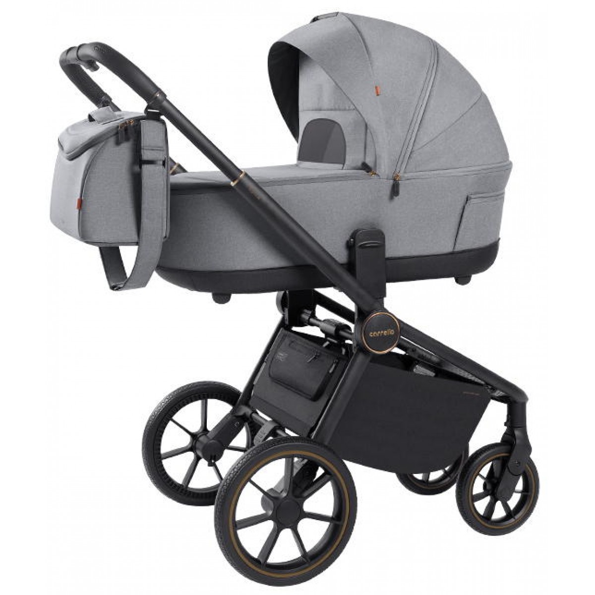 Рама коляски сделана на отлично: она мало весит, компактно складывается, послушная и просто великолепно рулится! Однако мы испытали её и считаем важным предупредить, что лучше всего она больше подойдёт для городского использования. Большой выбор модных оттенков и стильная рама в чёрном цвете выделит вас среди стандартных колясок. Колёса здесь довольно большие и резиновые. Амортизация находится на задней оси сбоку, тут она адаптивная – чем больше вес малыша, тем мягче она становится. Carrello Epica комплектации 2 в 1 рассчитана на любой рост родителей: у неё телескопическая ручка, а задняя ось находится под креслом (это значит, что даже высокий папа не будет спотыкаться при быстрой ходьбе).