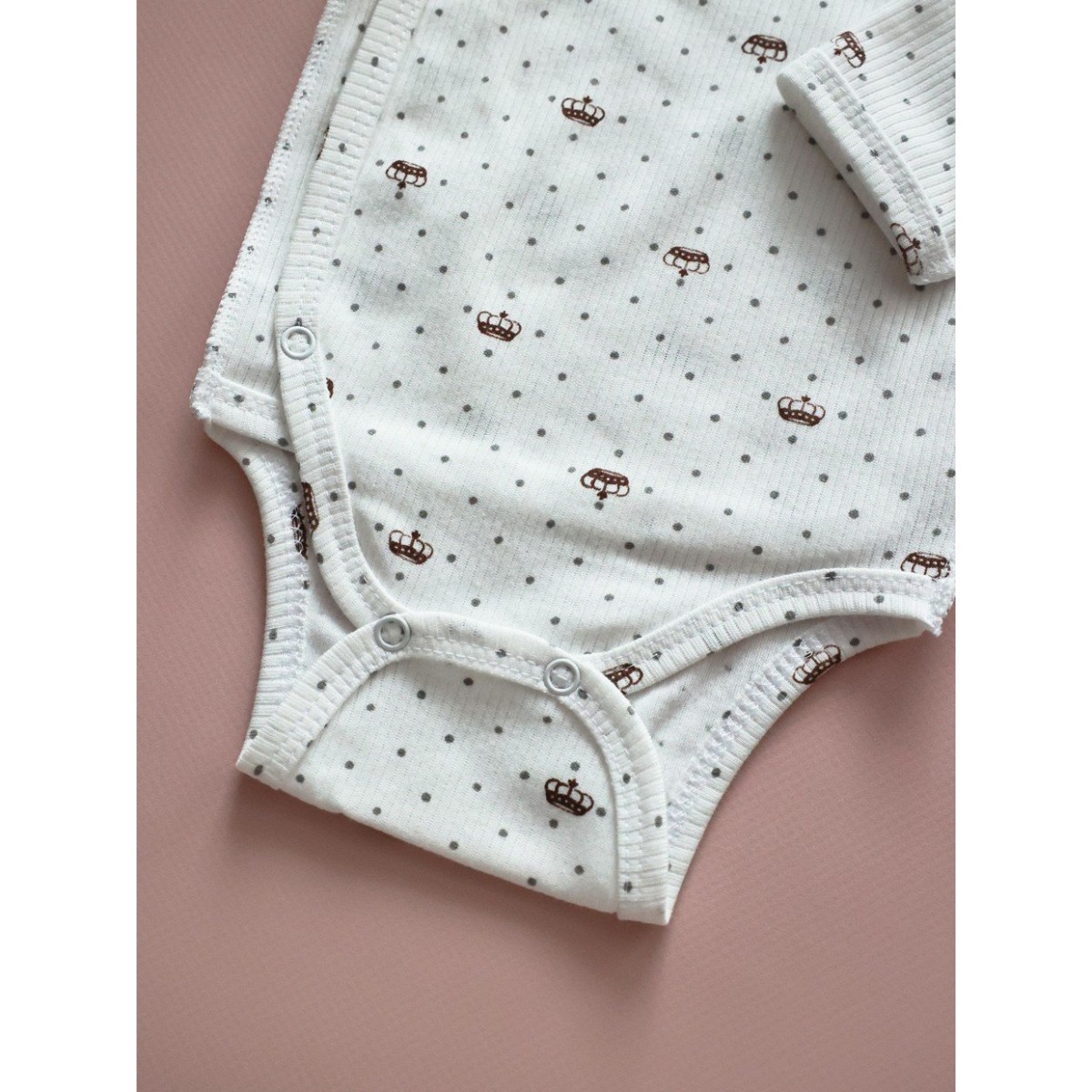 100% хлопок, очень нежная, красивая структурная ткань в рубчик. Без принта, лаконичная, по-малышковому стильная одежда.