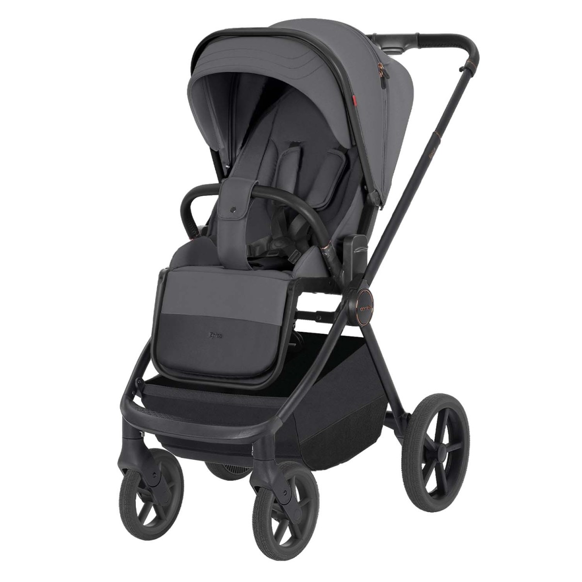 Рама коляски сделана на отлично: она мало весит, компактно складывается, послушная и просто великолепно рулится! Однако мы испытали её и считаем важным предупредить, что лучше всего она больше подойдёт для городского использования. Большой выбор модных оттенков и стильная рама в чёрном цвете выделит вас среди стандартных колясок. Колёса здесь довольно большие и резиновые. Амортизация находится на задней оси сбоку, тут она адаптивная – чем больше вес малыша, тем мягче она становится. Carrello Epica комплектации 2 в 1 рассчитана на любой рост родителей: у неё телескопическая ручка, а задняя ось находится под креслом (это значит, что даже высокий папа не будет спотыкаться при быстрой ходьбе).