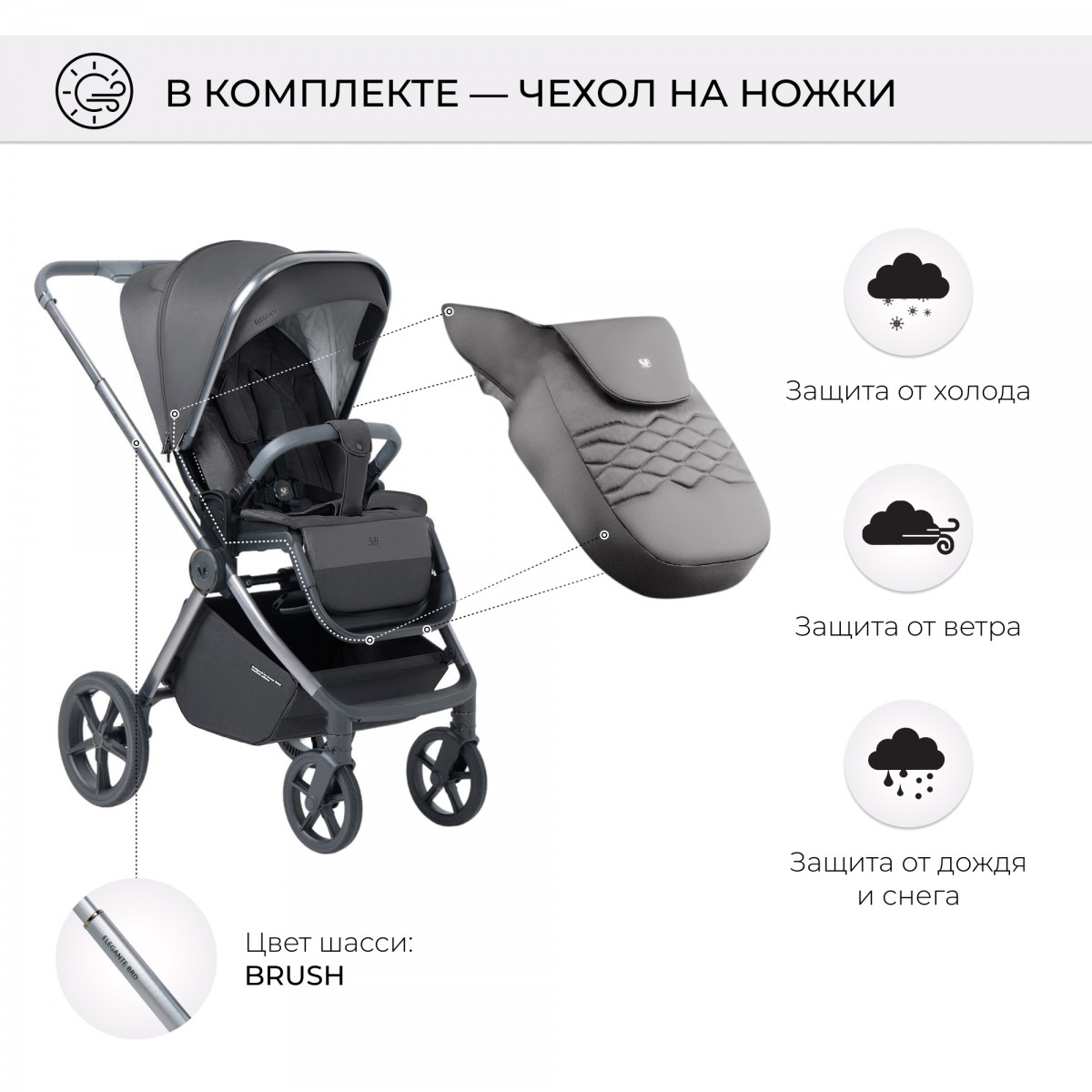 Прогулочный блок коляски Elegante обладает рядом удобных решений и особенностей, среди которых: