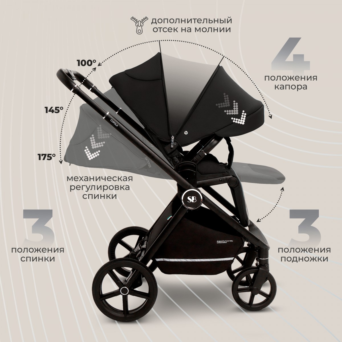 Не упустите шанс сделать прогулки с вашим малышом настоящим удовольствием! Sweet Baby Cupola — это коляска, которая сочетает в себе стиль, удобство и безопасность для вашего ребенка.