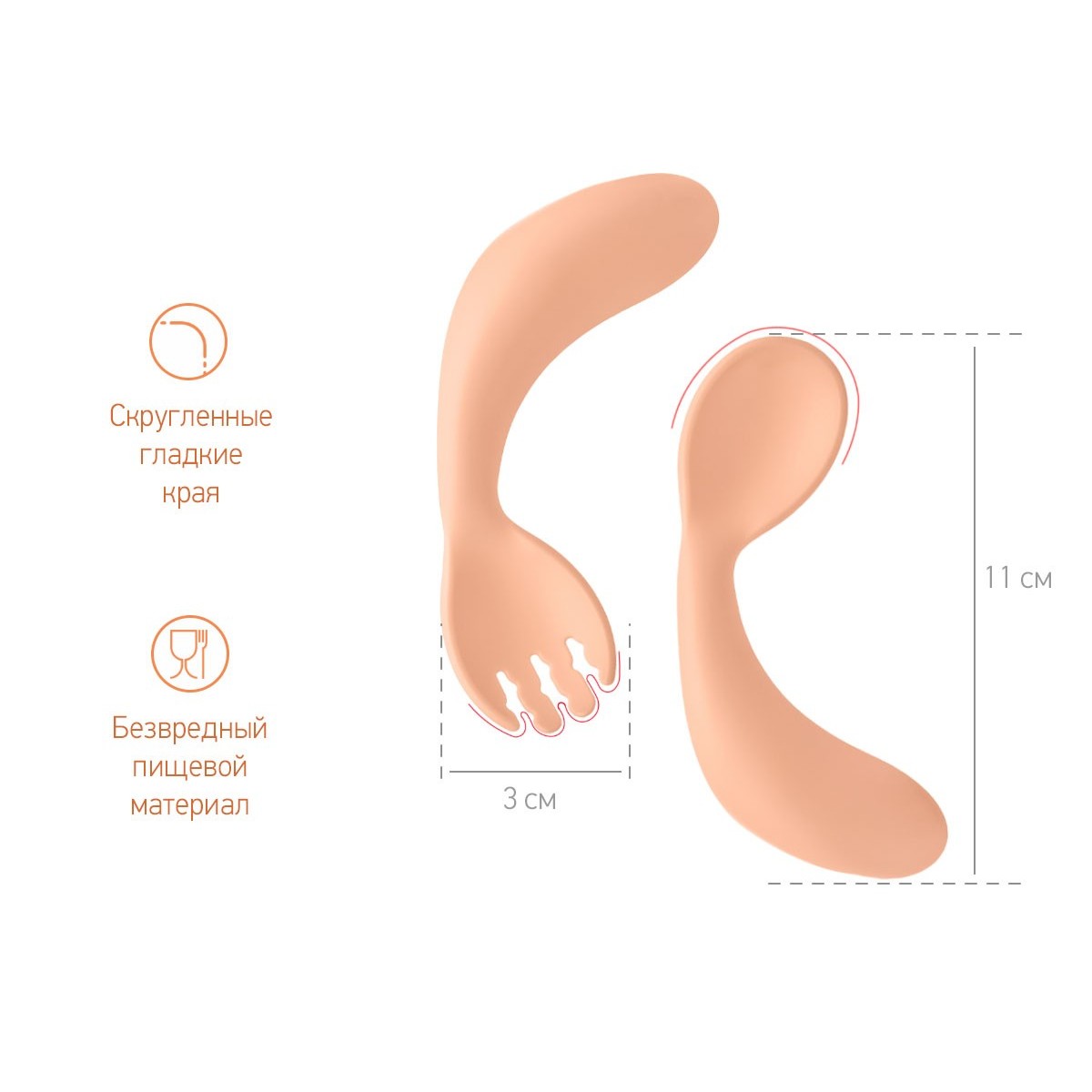 Столовые приборы изогнутой формы предназначены для малышей от 9 месяцев, которые только учатся есть самостоятельно.
