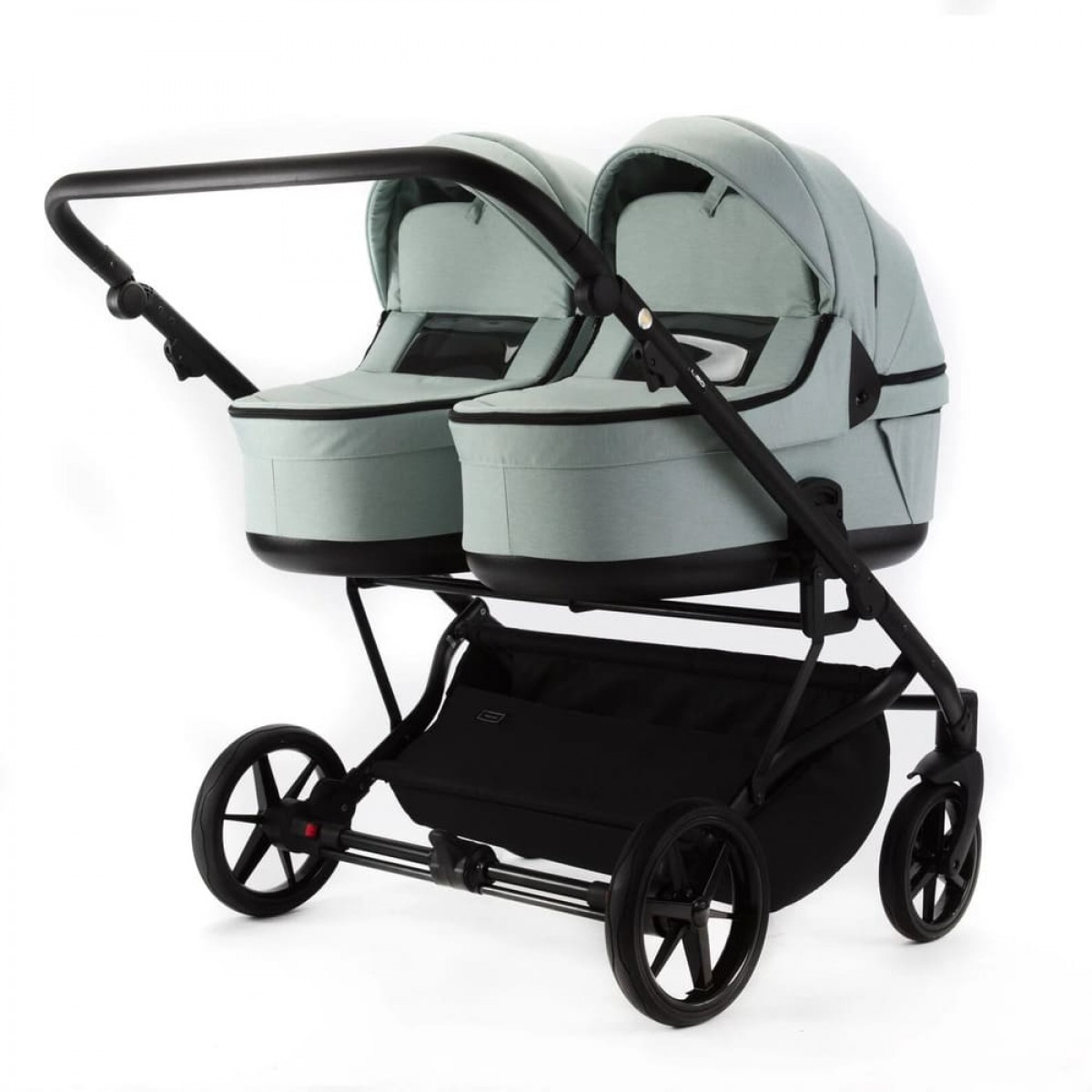 Adamex Leo Duo оснащена двумя легкими и компактными люльками, каждая весом по 3,8 кг. Люльки складные, чтобы не занимать много места для хранения и для облегчения веса всей коляски. Внутренние части люлек выполнены из мягкого хлопка, с поролоновыми матрасиками и съемными чехлами, которые можно стирать. В люльках предусмотрена регулируемая вентиляция в основании и изголовье под отстегивающимся клапаном.
