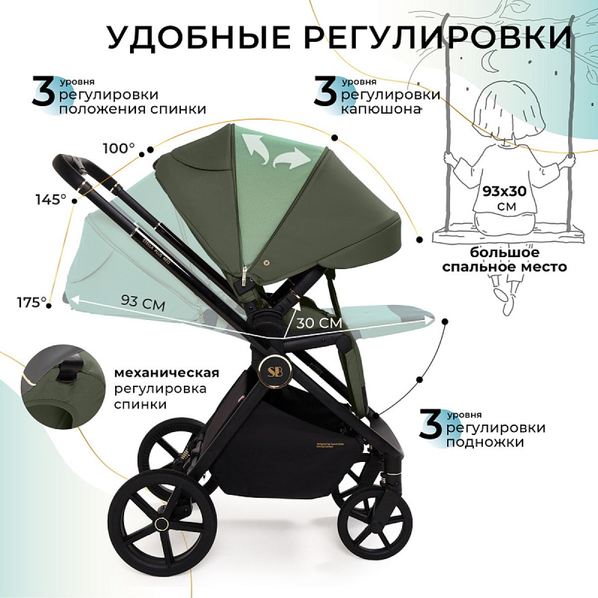 Термоактивное дно люльки — это не просто фишка, это ваша гарантия, что малыш всегда будет в тепле и уюте. При любых погодных условиях люлька поддерживает оптимальную циркуляцию воздуха и температуры, исключая возникновение влажности.
