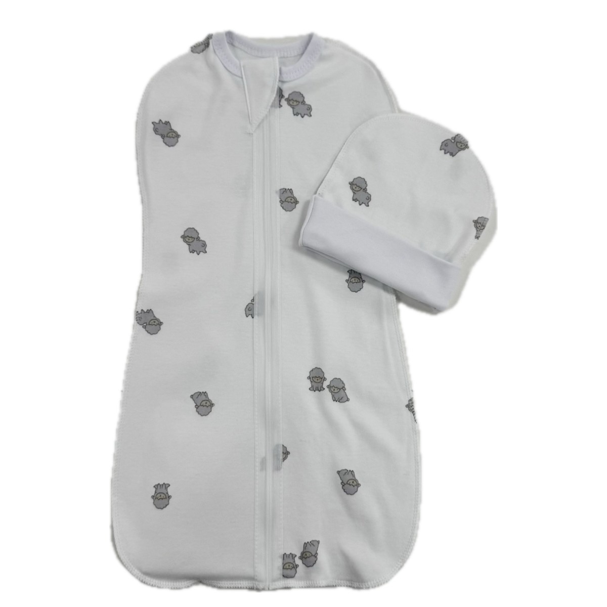 Пеленка-кокон на молнии с шапочкой 50-56 см принт: барашки Т-007
