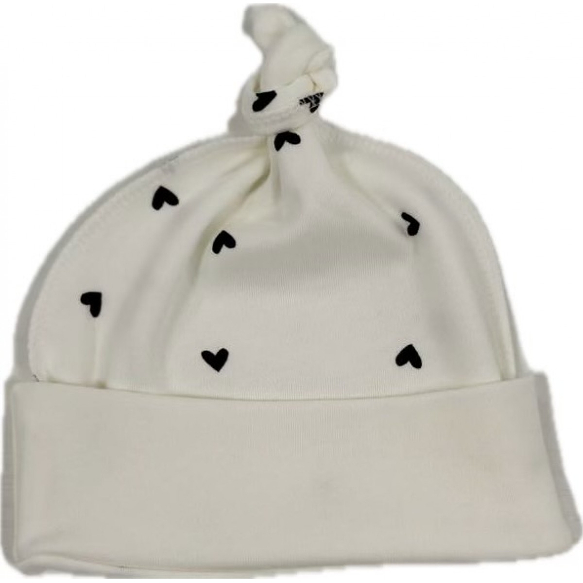 Чепчик с узелком 38-42 см принт: сердечки монохром Т-136