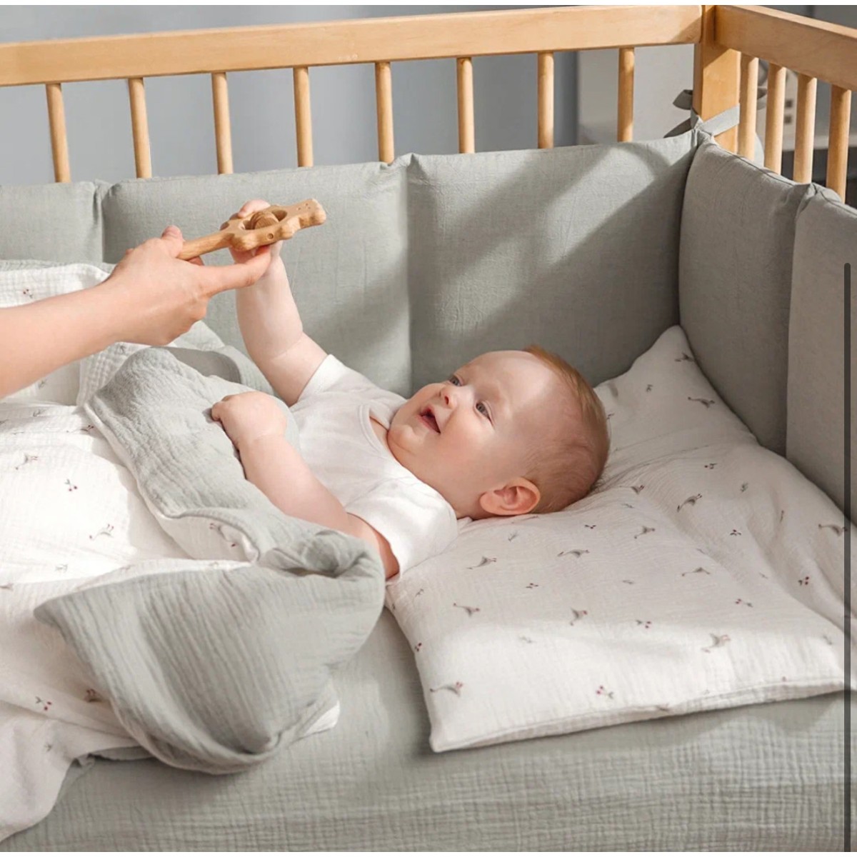 С комплектами Muslin идеально сочетаются бортики в кроватку