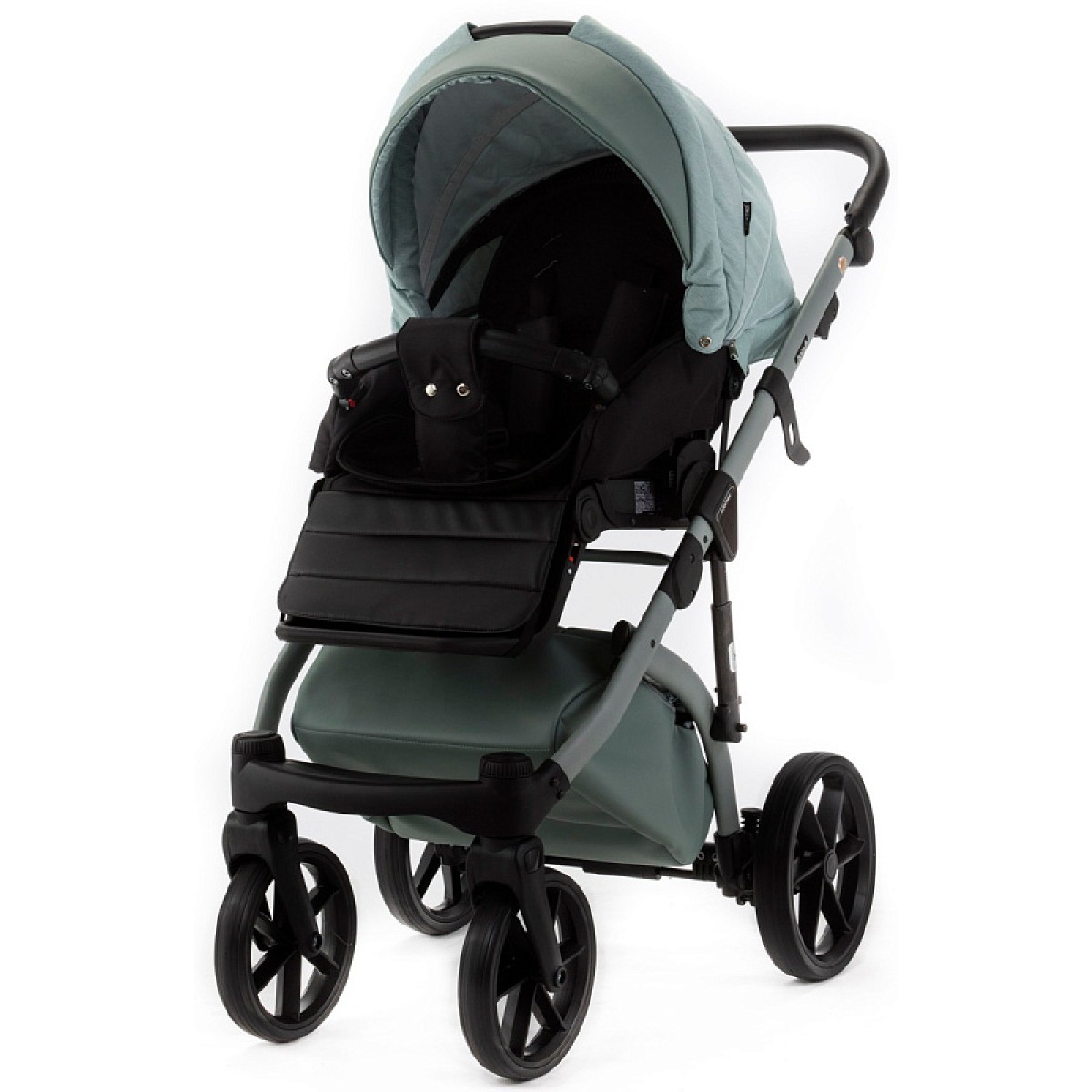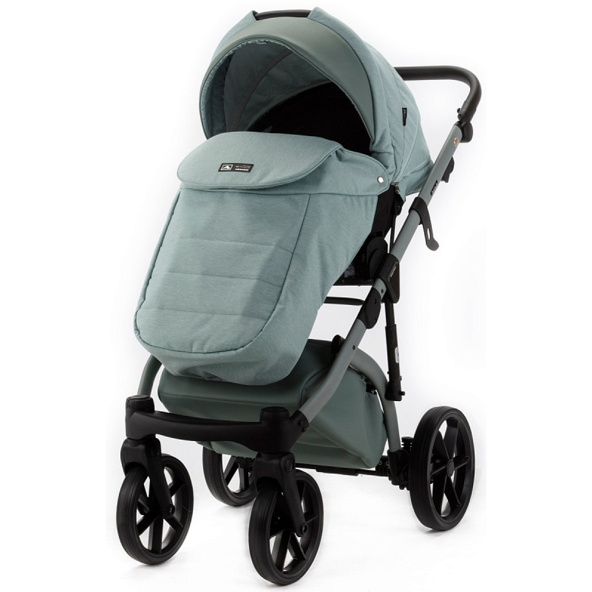 Коляска также оснащена колесами из пенополиуретана, так называемого PU foam, которые не требуют ухода, не прокалываются и идеально подходят для любой местности.