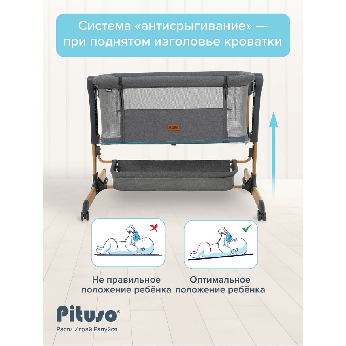 -система «антисрыгивание» — при поднятом изголовье кроватки