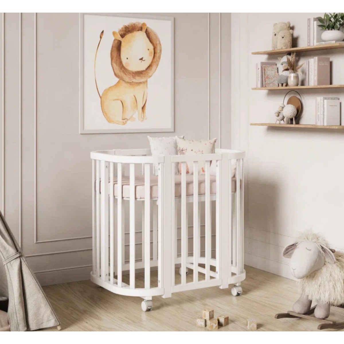 Сочетает в себе уют и удобство, имеет комплект расширения, который позволяет трансформировать кровать из колыбели для новорожденного в полноразмерную кровать для подросшего малыша.