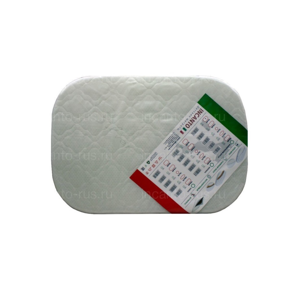 Сторона А — жесткая за счет плиты из многослойной кокосовой койры (1 см), сторона В — «Hollcon» высокой плотности (10 см). Съемный стеганый чехол на молнии (100 % хлопок).