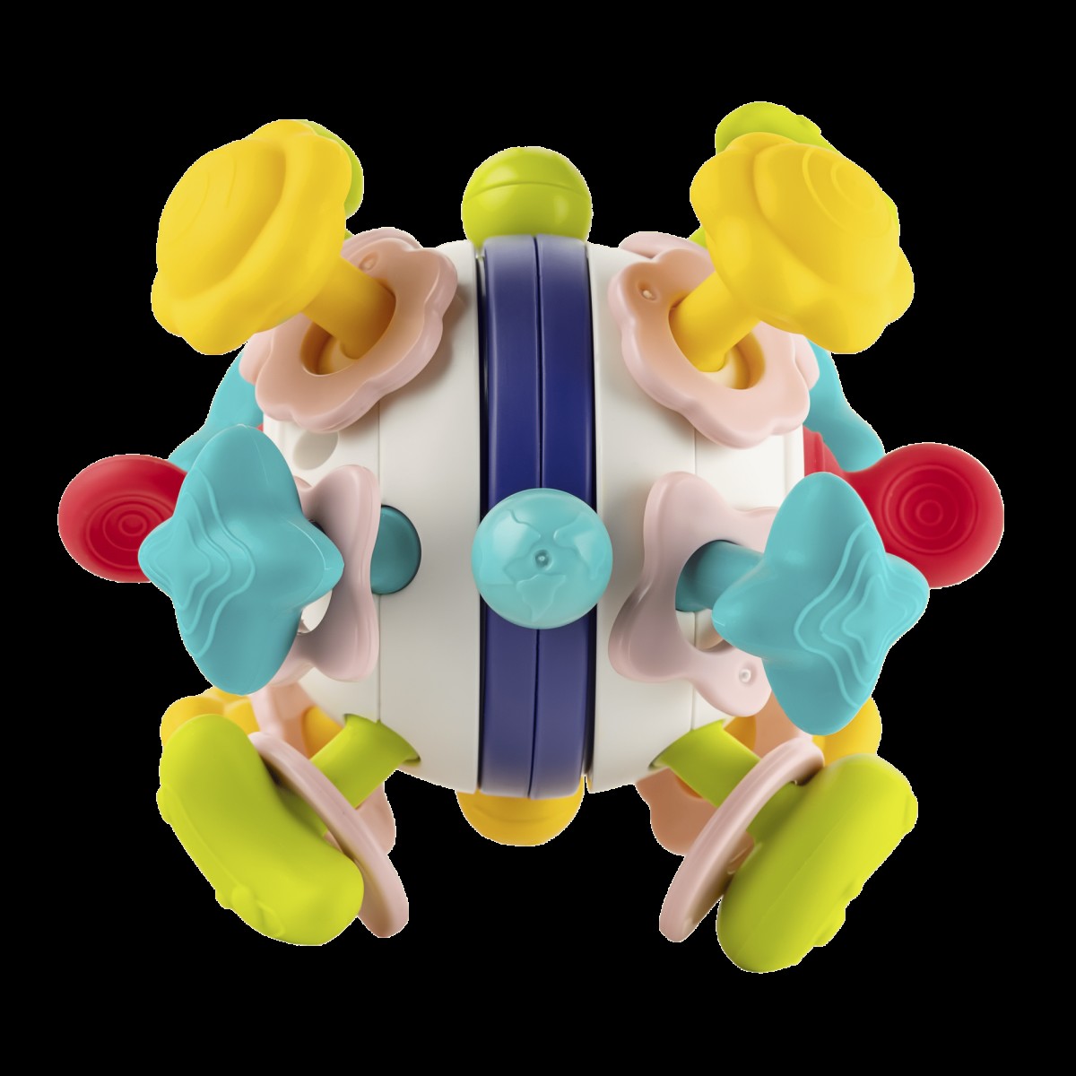 Эта интерактивная игрушка создана для раннего развития малыша. 12 разнофактурных красочных лучиков-прорезывателей мягко массирует десны и подходят для захвата маленькими пальчиками. Половинки корпуса шара вращаются на 360 градусов, издавая приятные трещащие звуки, и развивают слух и внимание. Гибкие красные ушки игрушки можно тянуть и нажимать: это стимулирует моторику и мышление. подходит для дома и занимает в дороге.