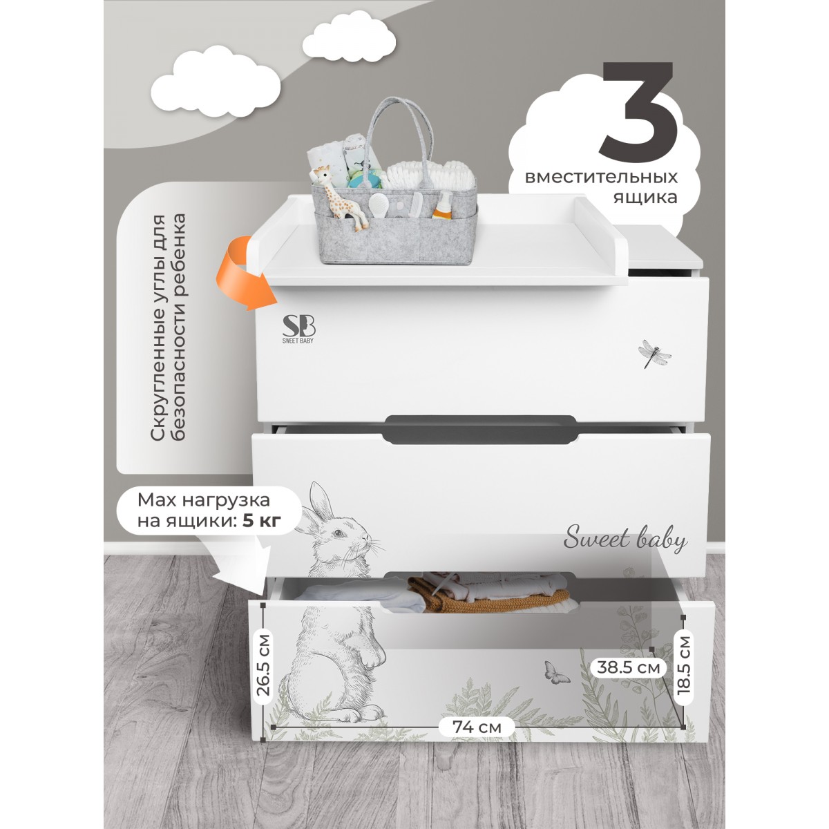 Благодаря лаконичному скандинавскому стилю комод Sweet Baby Arte выглядит очень современно и стильно. Рисунки придают комоду неповторимый дизайн.