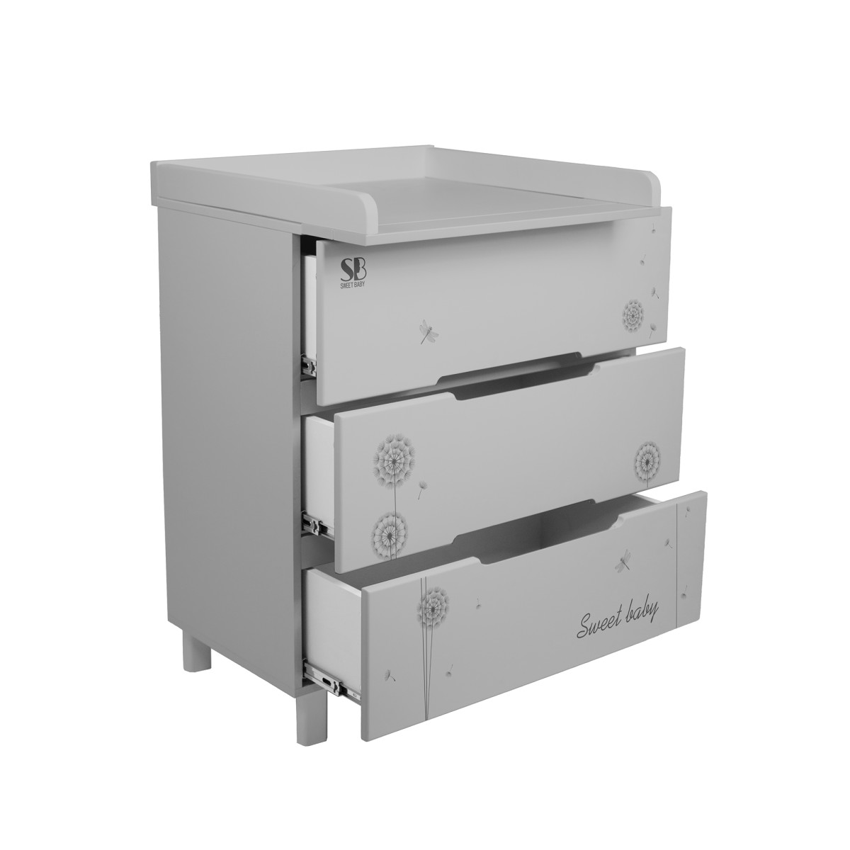 Комод пеленальный Sweet Baby Arte 3 ящика цвет: серый/одуванчик