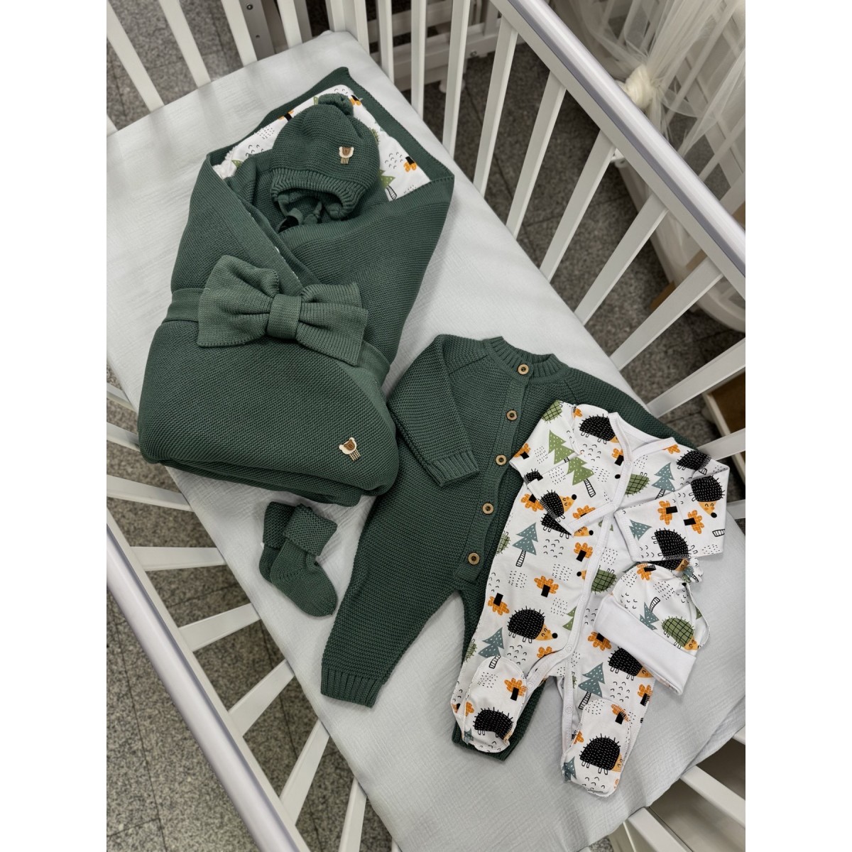 Комплект- палочка выручалочка . В нем все продумано, облегчённый вязаный пледик и тёплое одеяло-вкладыш можно использовать по-отдельности , при этом объединяя их в конверт на выписку в прохладную погоду или на прогулки.