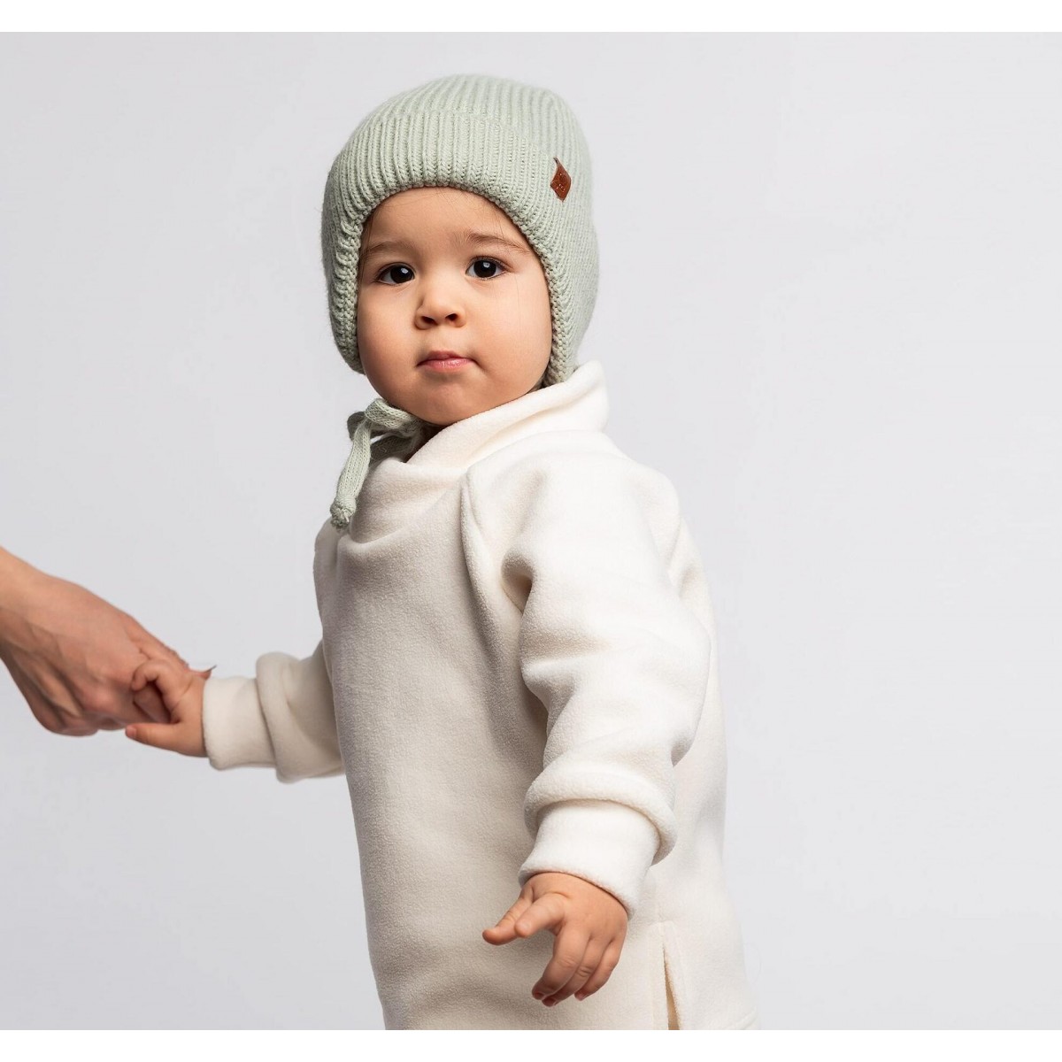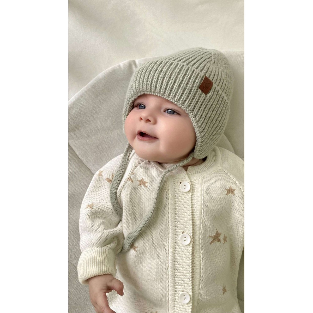 Красивая стильная вязаная шапочка из импортного мериноса. Хорошая посадка по голове малыша, хлопковая подкладка внутри шапочки позволяет носить ее не поддевая чепчик или хлопковую шапочку. Модель идет с завязками.