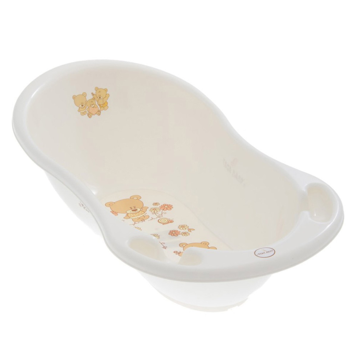 Ванночка для купания малыша с рождения Тега 86 см со сливом " Teddy / Мишки" цвет: белый жемчуг MS-004 ODPLYW-118