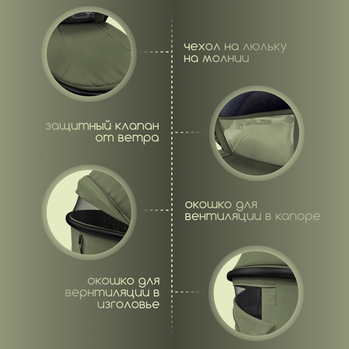 -Москитная секция в капоре и силиконовое смотровое окошко на магните обеспечивают циркуляцию воздуха и удобный контроль за ребёнком.
