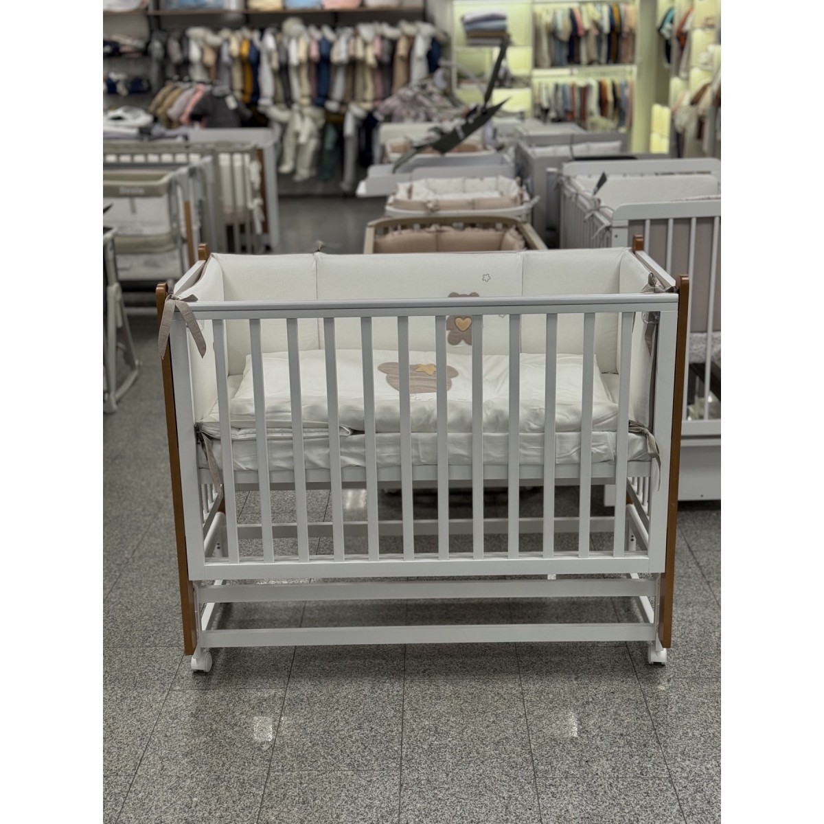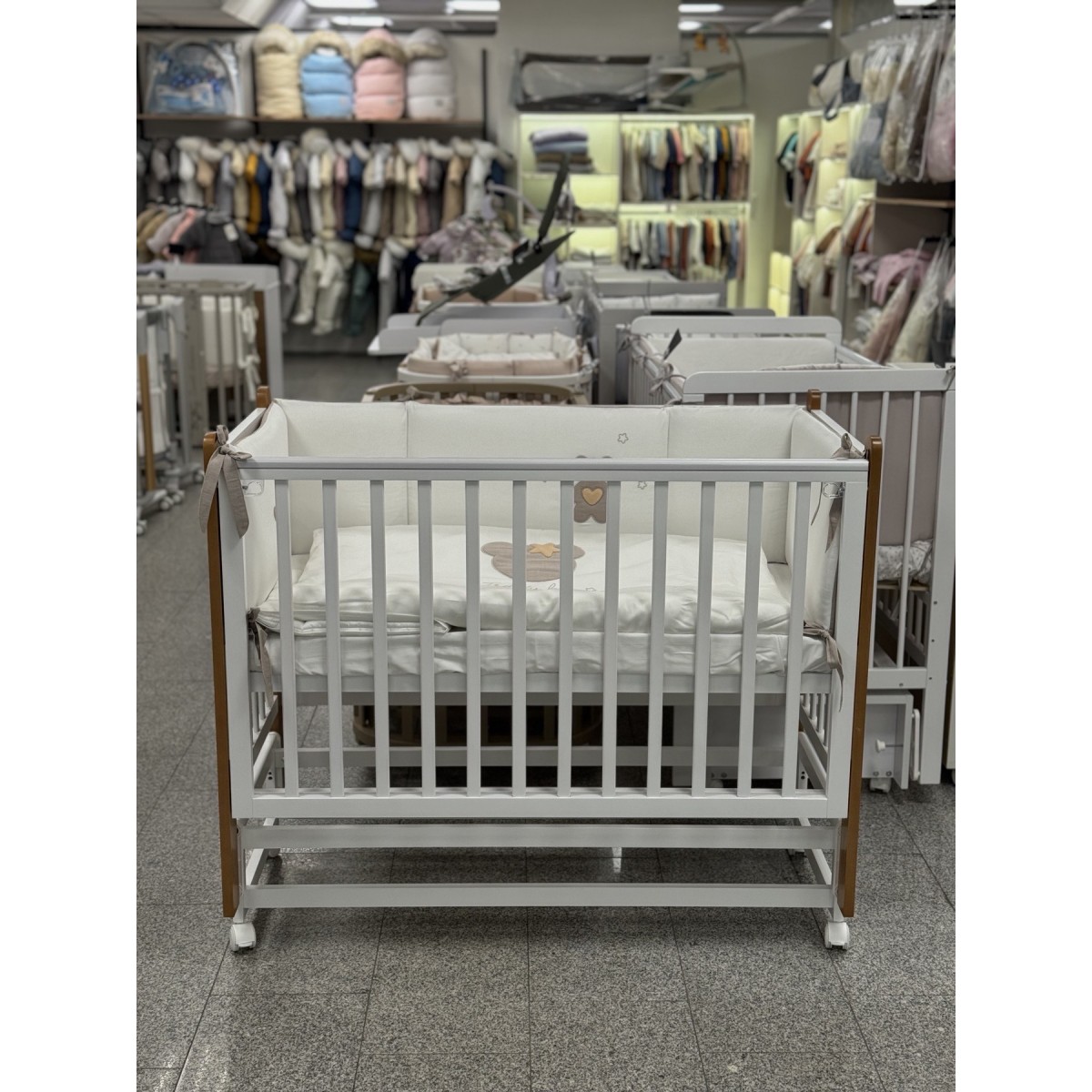 Кроватка детская Lunna Lika с маятником и колесами + быстросъемная стенка цвет: белый/бук