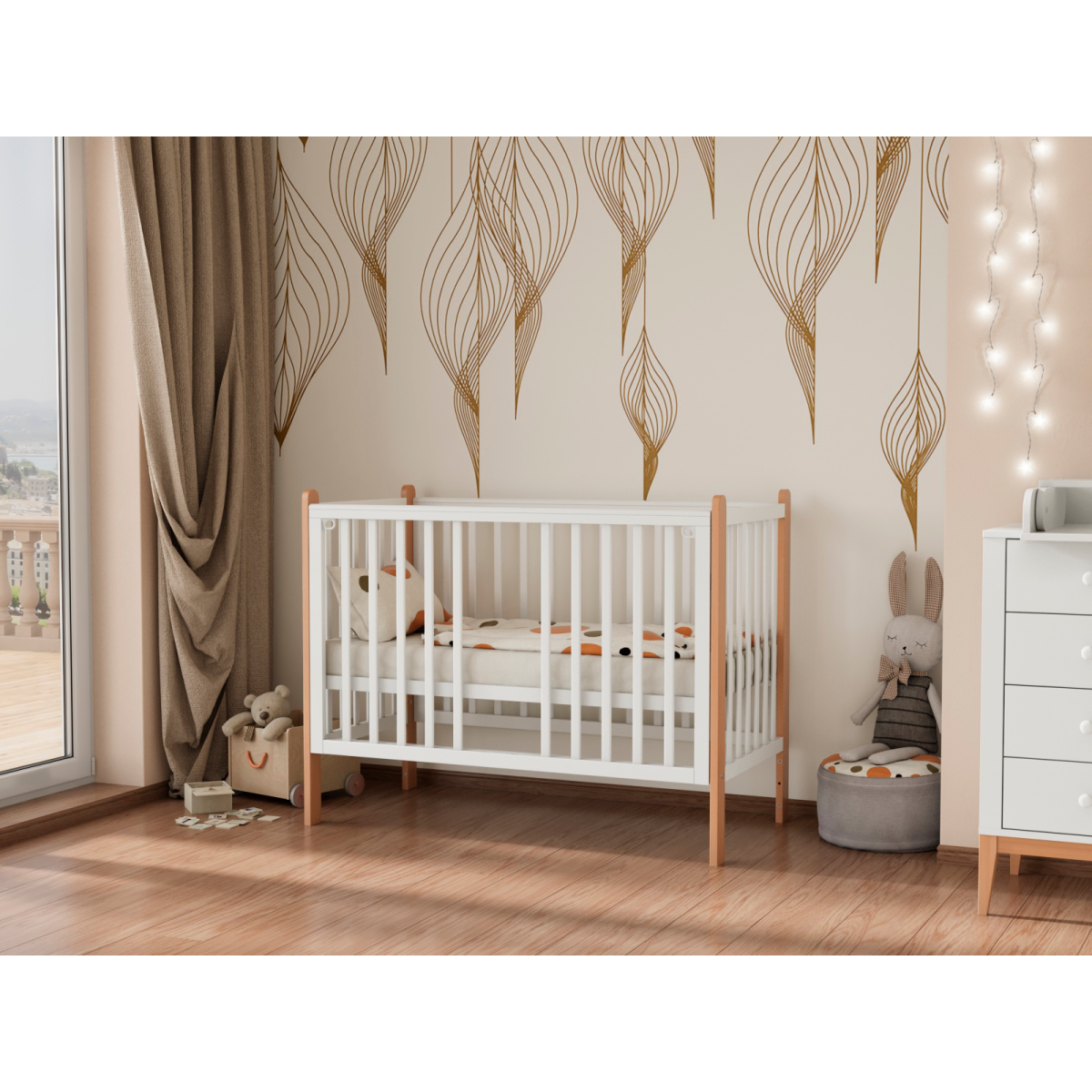 Кроватка детская Lunna Lika с маятником и колесами + быстросъемная стенка цвет: белый/ стойки бук