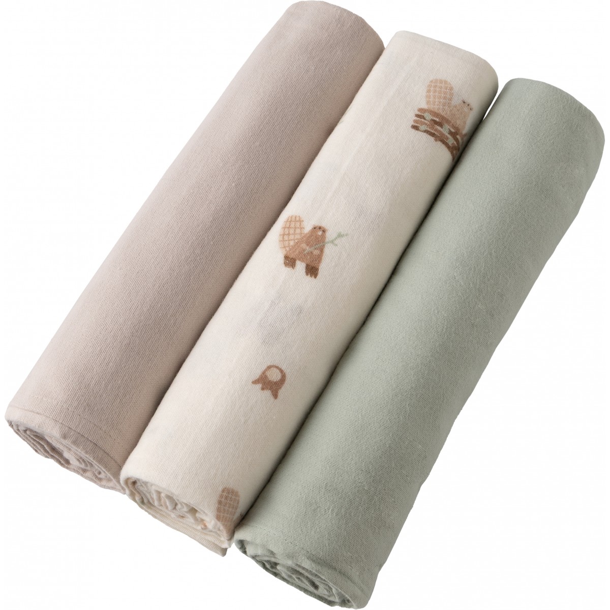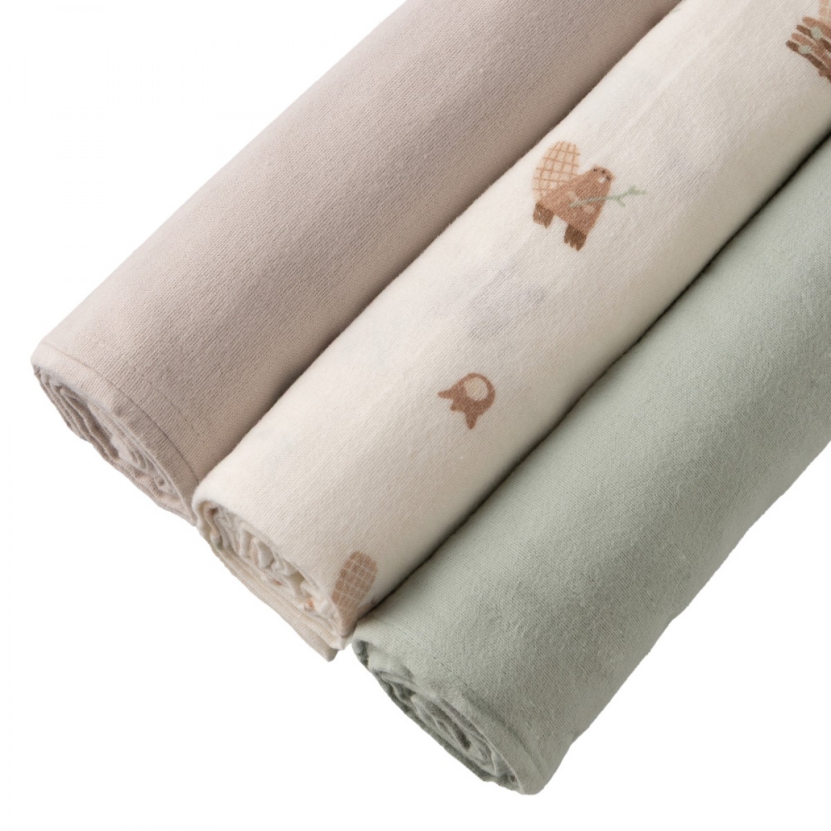 Набор фланелевых пеленок 3 шт Buba Kids цвет: бобры на хутор/речная вода/бежевый BKFLSW5
