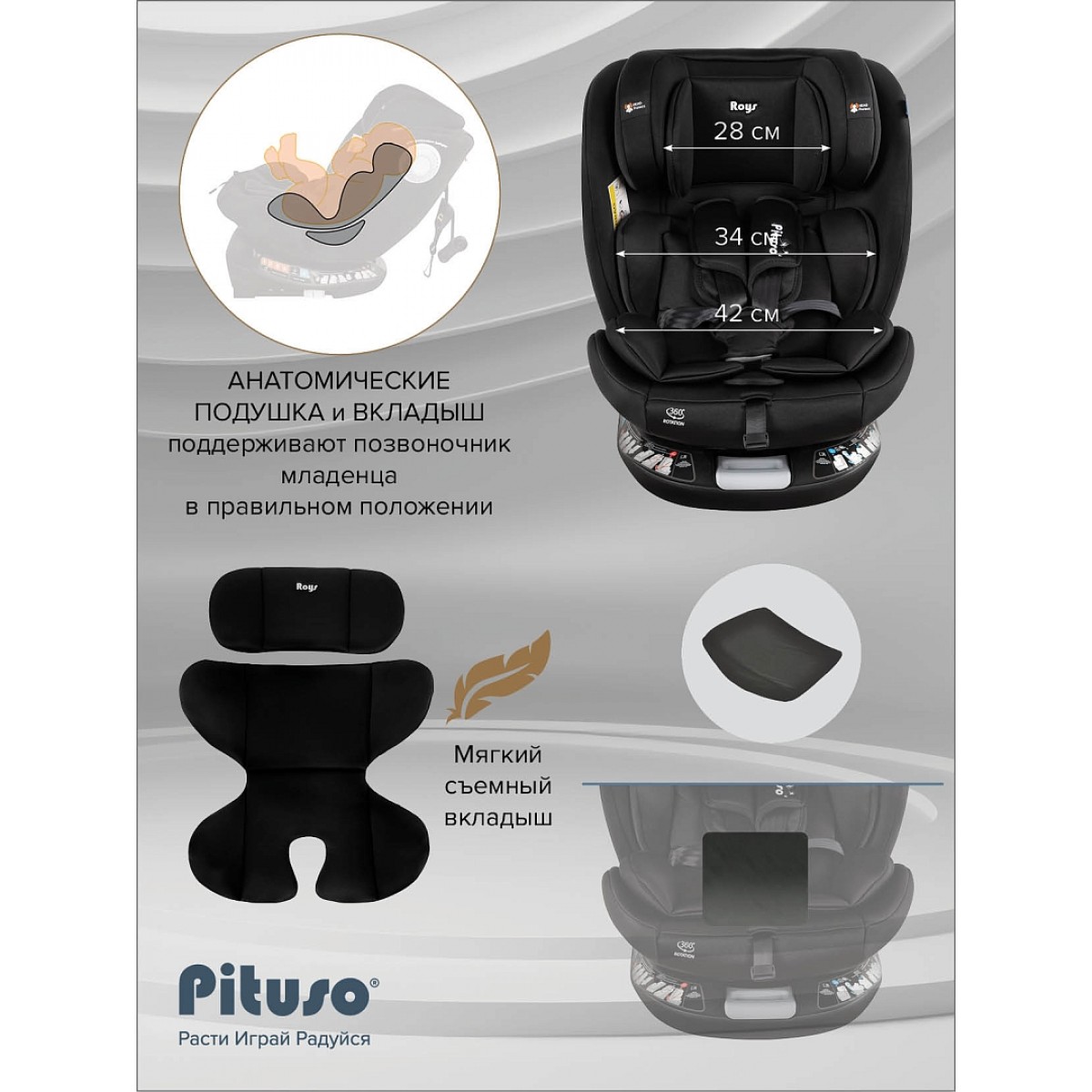 Автокресло детское 0-36 кг Pituso Roys + цвет: Black,black Inlay /Черный,Черный вкладыш