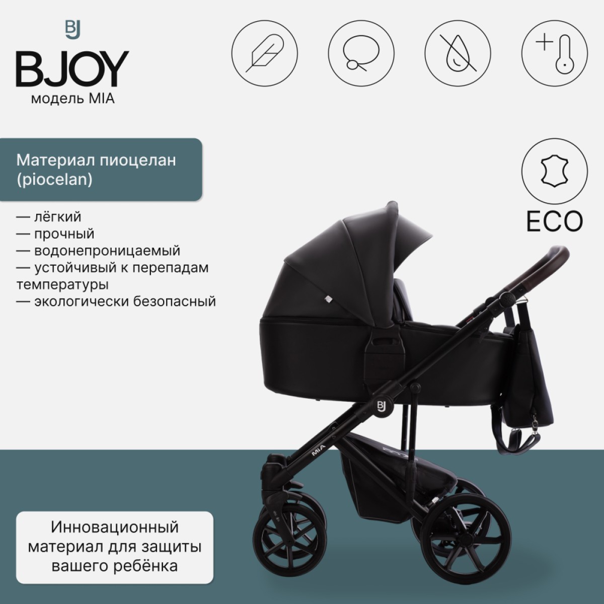 BJOY MIA – это еще и прогулочная коляска, предназначенная для растущего ребенка. Сиденье оснащено регулируемым капюшоном, что позволяет адаптировать его к текущим погодным условиям. Спинка и подножка регулируются, что позволяет принять удобное положение. Ремни «растут» вместе с ребенком, обеспечивая безопасность во время прогулок.