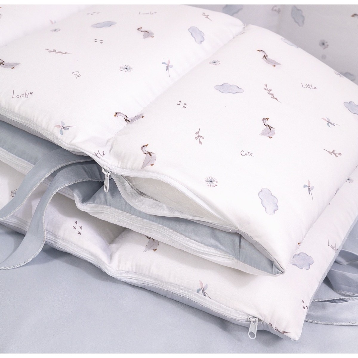 Мы постарались сделать комплект не только красивым, но и практичным. Благодаря пододеяльнику на молнии и натяжной простыне на резинке белье легко заправлять. При этом застежка сделана таким образом, чтобы ребенок не смог случайно ее задеть.