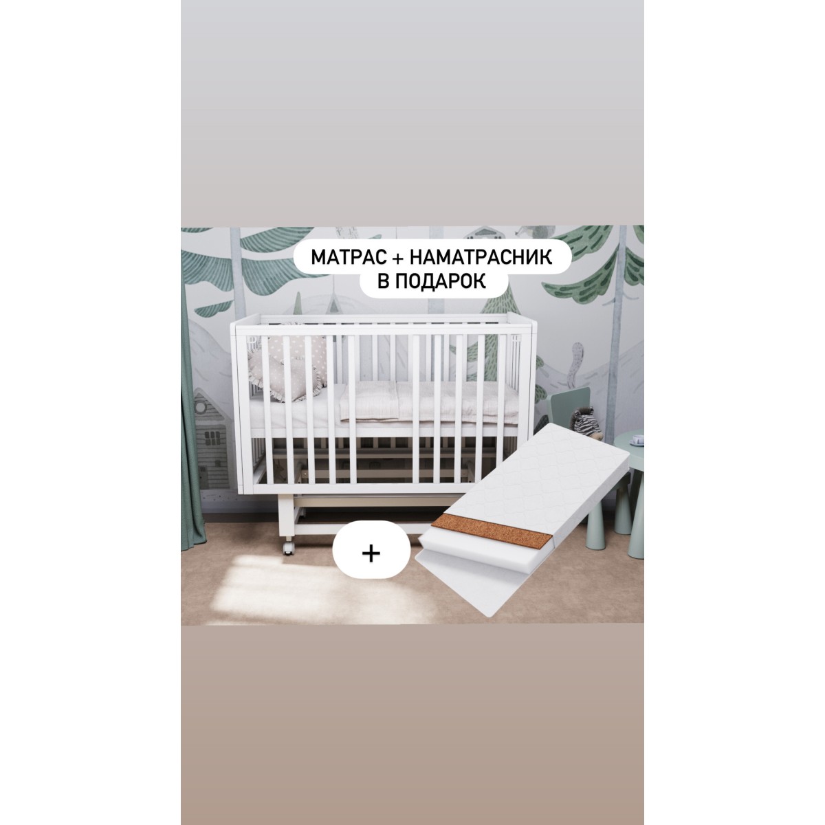 Кроватка детская Lunna Rita Lux с автостенкой, маятником и колесами + матрас с наматрасником цвет: белый