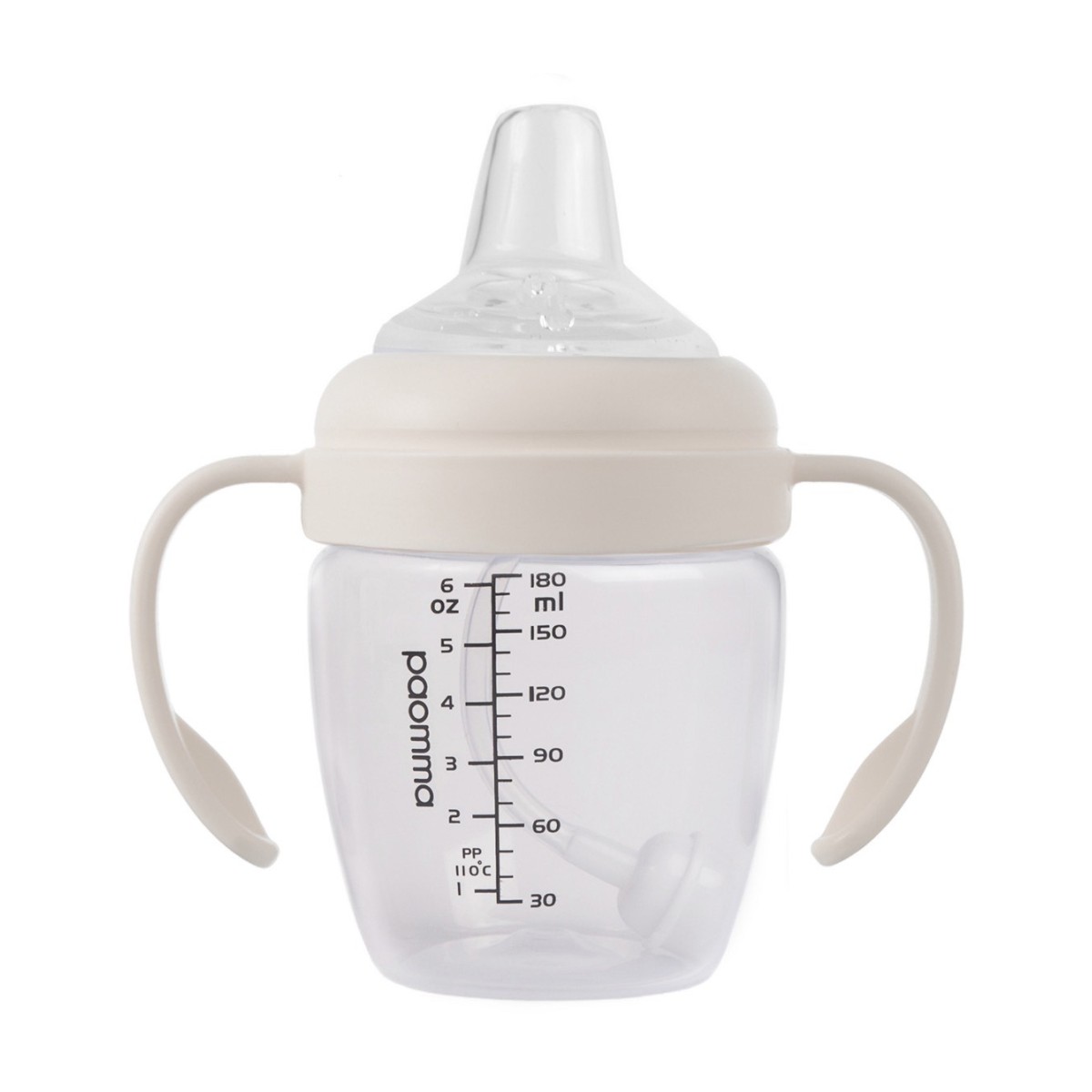 Поильник-непроливайка paomma с силиконовым носиком (6+ мес на 180 мл) создан для удобного и безопасного обучения малыша самостоятельному питью. Силиконовый носик выполнен из мягкого и прочного силикона, устойчив к укусам, не травмирует зубы и десны. Бутылочка, крышка и ручки изготовлены из безопасного полипропилена (пищевого пластика) и не содержит BPA. Двойной клапан регулирует скорость потока и защищает от проливания и захлебывания. Антиколиковая система снижает риск колик и газиков, предотвращая обратный поток жидкости. Съемные ручки с изогнутой формой обеспечивают надежный захват и помогают развивать навык самостоятельного питья. Герметичная крышка поильника плотно закрывается и защищает носик от загрязнений и сохраняет гигиеничность. Поильник-непроливайка paomma имеет минимум деталей: легко собирается и разбирается. Его можно кипятить, стерилизовать и мыть в посудомоечной машине.