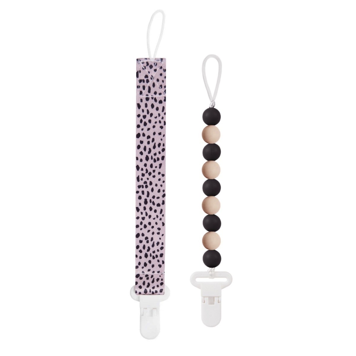 В наборе 2 держателя: тканевый (18 см без клипсы) и с силиконовыми шариками (11 шт-16 см без клипсы). Надежная пластиковая клипса. Держатель защитит предметы от падения, такие как пустышки, ниблеры, прорезыватели.