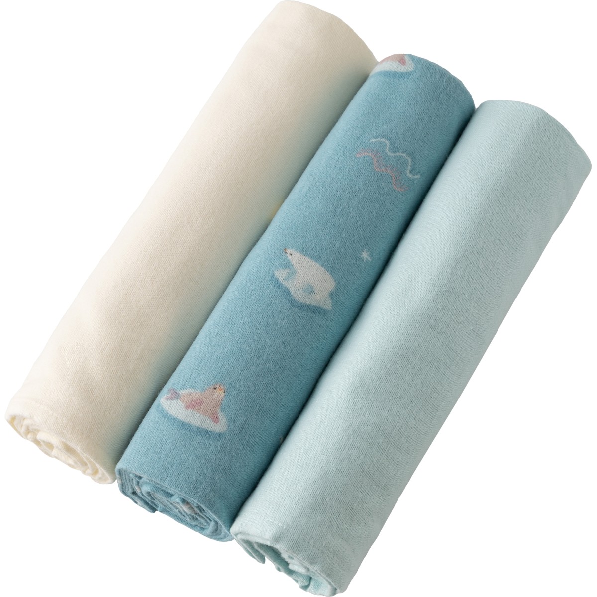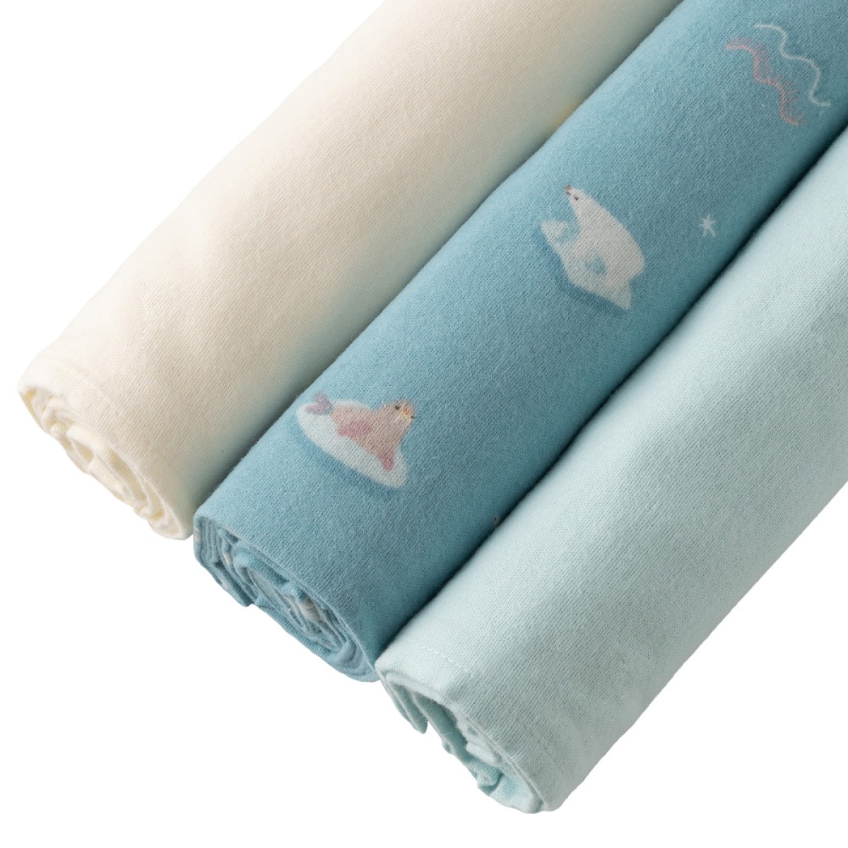 - Набор состоит из пелёнки с рисунком и двух однотонных.