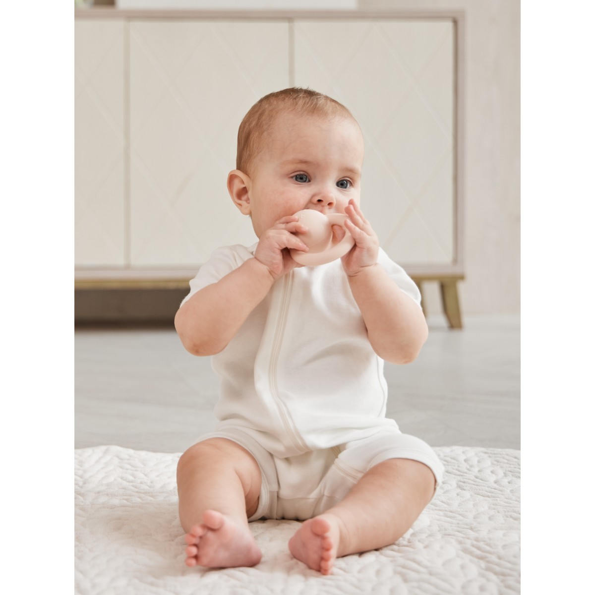 Невесомая погремушка с рельефной поверхностью бережно массирует дёсны при кусании, развлекает и успокаивает ребёнка, благодаря деликатному звучанию. Игрушка тренирует мелкую моторику, развивает слух и зрение. Покрытие погремушки — из пищевого Platinum-силикона высочайшего качества, в его составе отсутствуют токсины или вредные примеси. Игрушка выполнена в нежных, пастельных оттенках, гармонично дополняя интерьер детской.