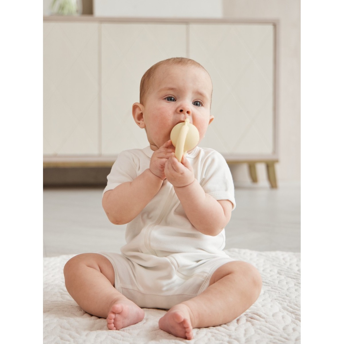 Невесомая погремушка с рельефной поверхностью бережно массирует дёсны при кусании, развлекает и успокаивает ребёнка, благодаря деликатному звучанию. Игрушка тренирует мелкую моторику, развивает слух и зрение. Покрытие погремушки — из пищевого Platinum-силикона высочайшего качества, в его составе отсутствуют токсины или вредные примеси. Игрушка выполнена в нежных, пастельных оттенках, гармонично дополняя интерьер детской.