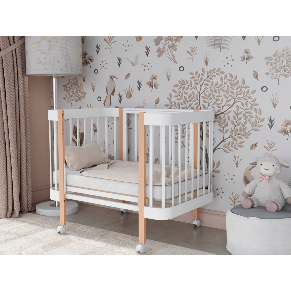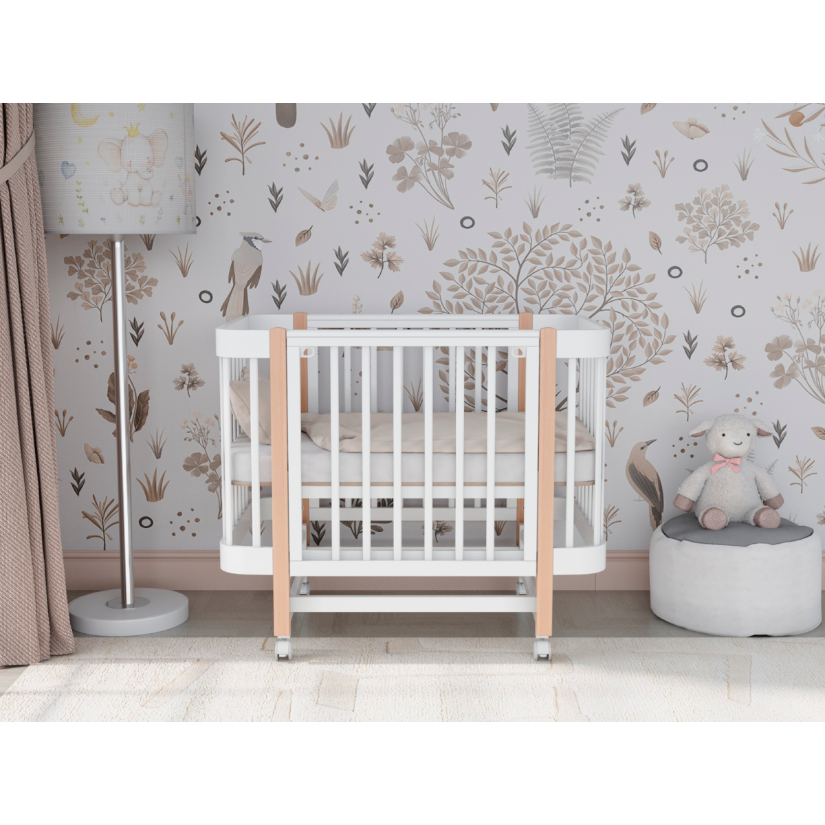 Кроватка детская Mimi с маятником и колесами + быстросъемная стенка цвет: белый/бук