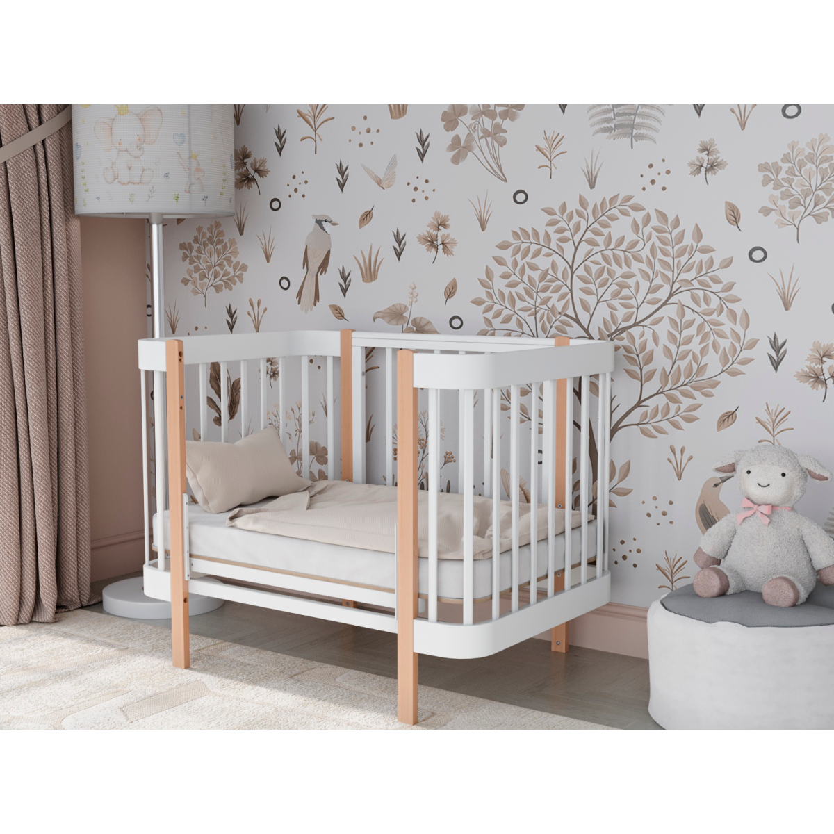 Красивая, стильная и многофункциональная кроватка, которая сделает сон вашего малыша безопасным и комфортным. Ее закругленные формы придают уникальный дизайн и обеспечивают безопасность. Кроватка изготовлена из экологичной древесины, а массивные стойки из натурального бука делают ее прочной и надежной.