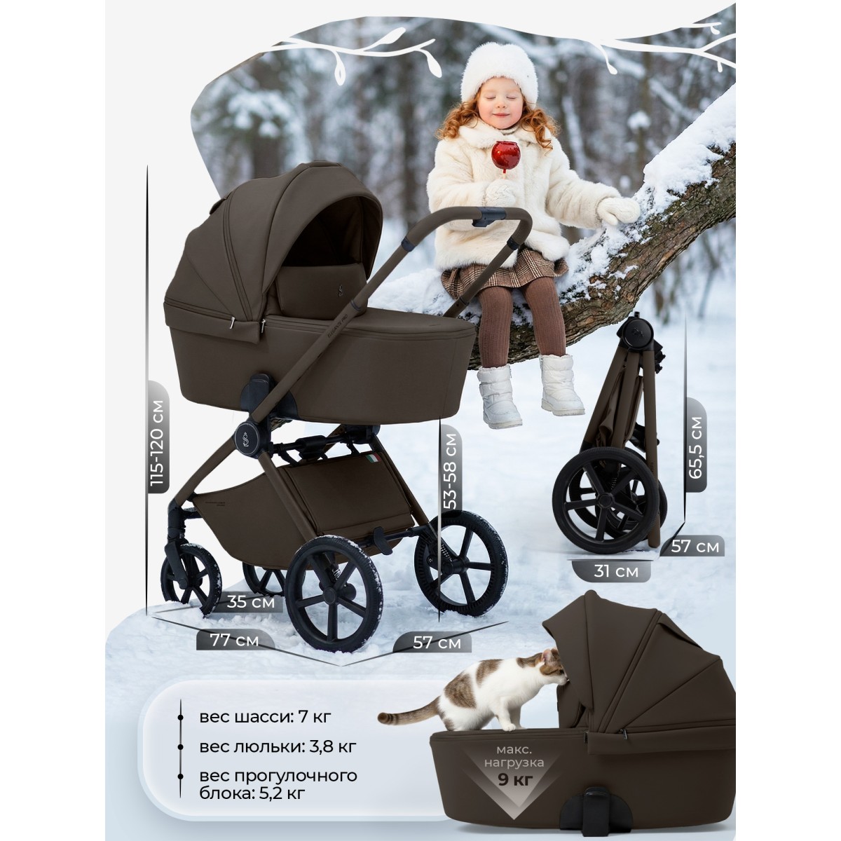 Высота коляски (с люлькой): 115-120 см
