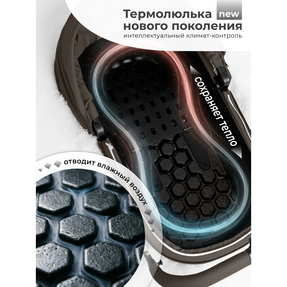 Уют в любую погоду. Тёплая накидка с центральным доступом надёжно защищает малыша от холода, а дополнительные бортики создают ещё более комфортное и защищённое пространство.