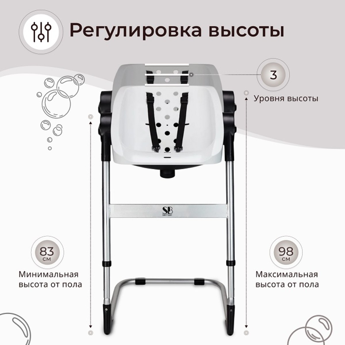 Sweet baby Charli Chair + 2в1 - инновационный стульчик - ванночка 2в1 для купания ребенка с рождения до 17 кг. Идеальное решение для душевых кабин! Теперь не придется мучиться с тазиками, ванночками которые забирают все пространство в ванной комнате. Достаточно легкая и компактная конструкция позволяет удобно купать ребенка на выбранной вами высоте! Никаких проблем со спиной! Удобное эргономическое сидение регулируется по наклону, позволяя ребенку комфортно лежать или находиться полулежа. Для безопасности малыша предусмотрены ремешки безопасности.