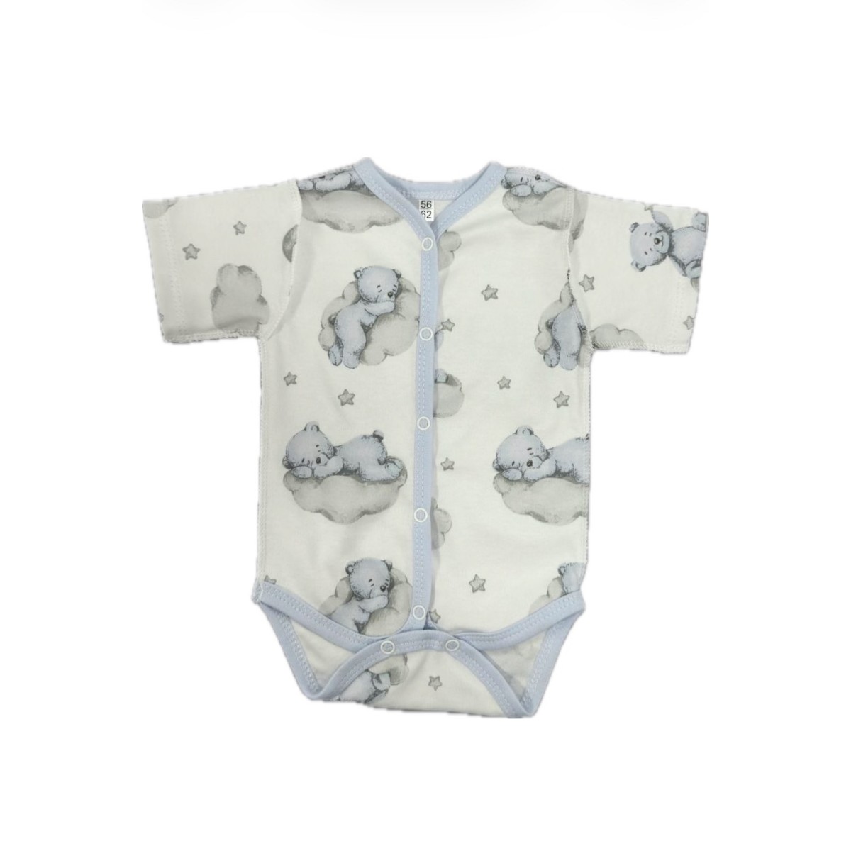 Боди с коротким рукавом на кнопках 56-62 см принт: мишки на облаках Т-133