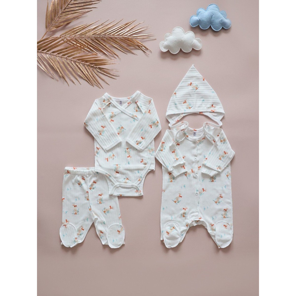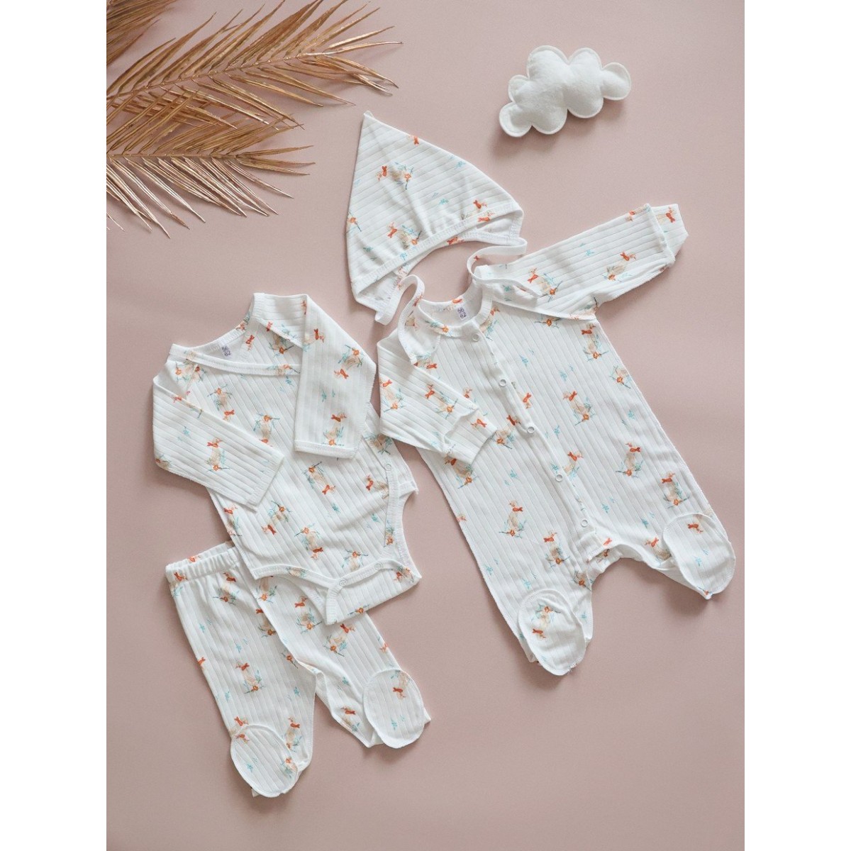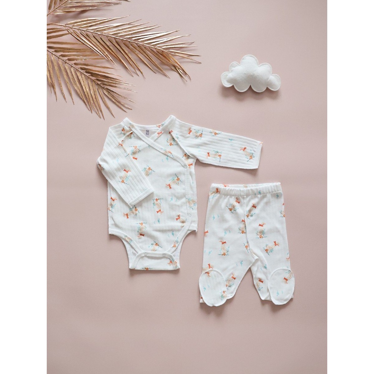 100% хлопок, очень нежная, красивая структурная ткань в рубчик. Без принта, лаконичная, по-малышковому стильная одежда.