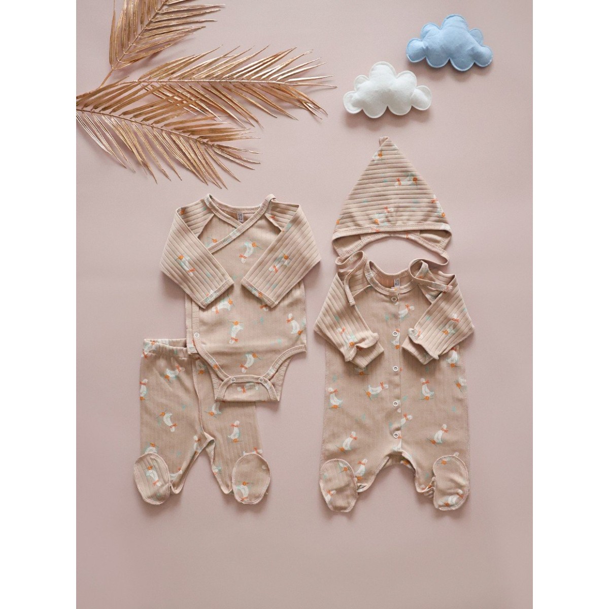 Комплект для малыша 4 предмета 56-62 см цвет: гуси на капучино Т-231