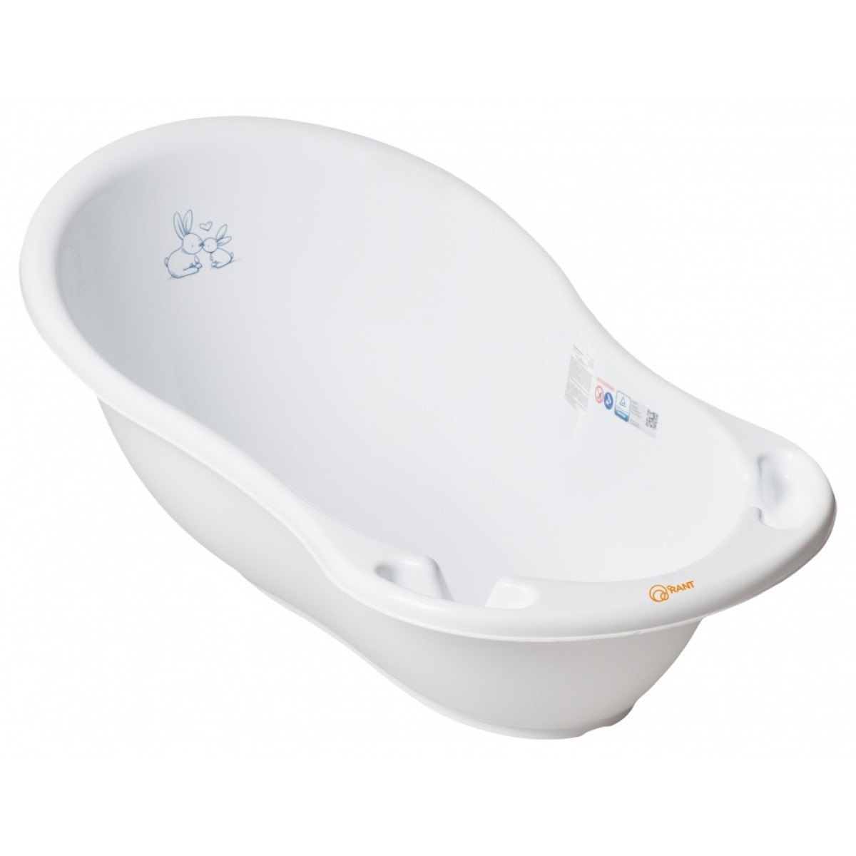 Ванночка для купания с рождения Тега 102см со сливом " Bunnies / Кролики" цвет: белый KR-005-103