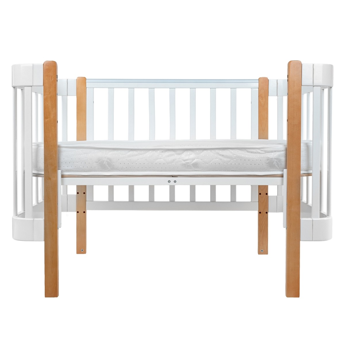 Кроватка деревянная Pituso Olivia с маятником, ящиком и быстросъемной автостенкой цвет: белый/бук